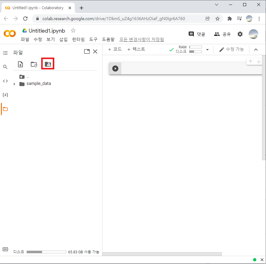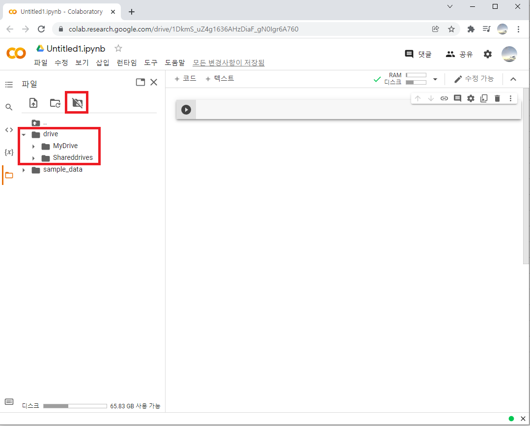 이렇게 구글 드라이브와 코랩(Colab) 연동하기가 완료되었습니다!